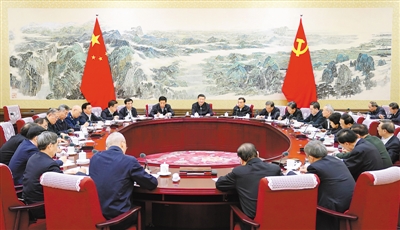 会议强调,维护习近平总书记党中央的核心、全党的核心地位,维护党中央权威和集中统一领导,是推动新时代中国特色社会主义不断发展前进的根本政治保证。面对当今世界百年未有之大变局,面对错综复杂的国内外风险挑战,习近平总书记高瞻远瞩、统揽全局、运筹帷幄、指挥若定,作出一系列重大科学判断,提出一系列重大战略策略,推动一系列重大工作,领导全党全国各族人民在进行具有许多新的历史特点的伟大斗争、推进新时代中国特色社会主义发展上取得新的重大成就,展现了共产党人坚定的理想信念、人民领袖深切的为民情怀、马克思主义政治家高超的政治领导艺术。中央政治局的同志要带头增强“四个意识”、坚定“四个自信”、做到“两个维护”,自觉在思想上政治上行动上同以习近平同志为核心的党中央保持高度一致,坚定理想信念,增强担当意识,发扬斗争精神,发挥制度优势,提高治理能力,坚定不移贯彻落实习近平新时代中国特色社会主义思想,坚定不移贯彻落实习近平总书记重要指示精神,坚定不移贯彻落实党中央决策部署,努力把党和国家工作做得更好。