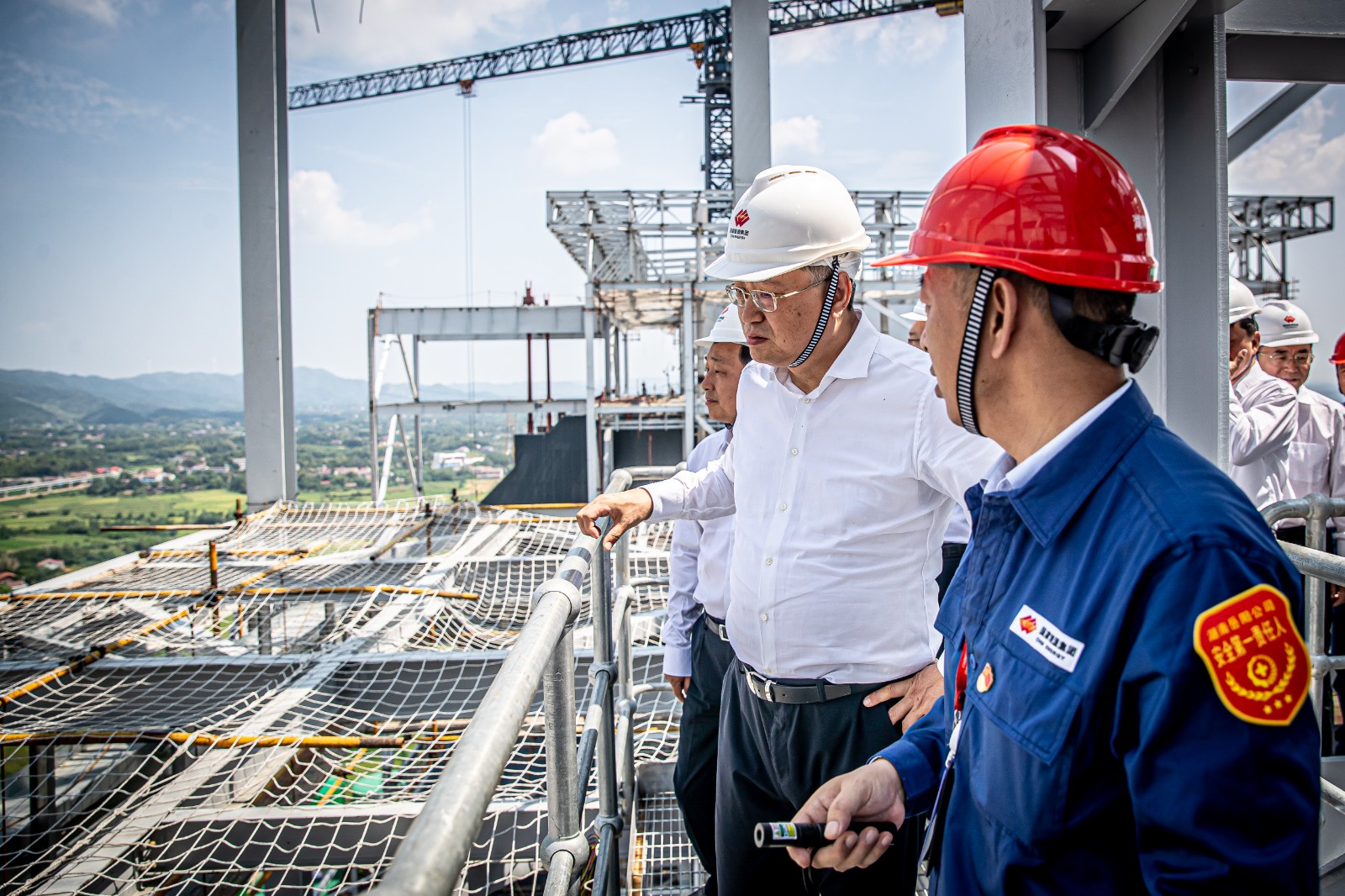 刘国跃在岳阳电厂察看锅炉107米平台施工情况
